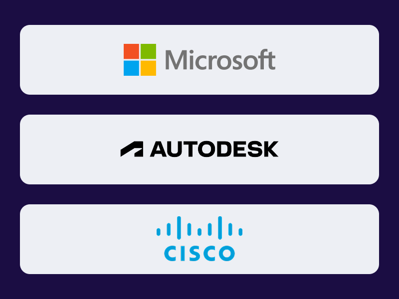 Готовим студентов Академии к прохождению профессиональной сертификации Cisco, Microsoft, Autodesk по профилю обучения. Следим за актуальными требованиями экзаменов, чтобы выпускники могли подтвердить свою квалификацию на международном уровне.500+